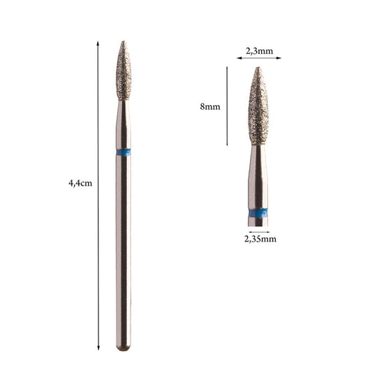Flame Diamond Drill Bit 2.3mm Red/Blue, Elongated Tip (Kmiz)
